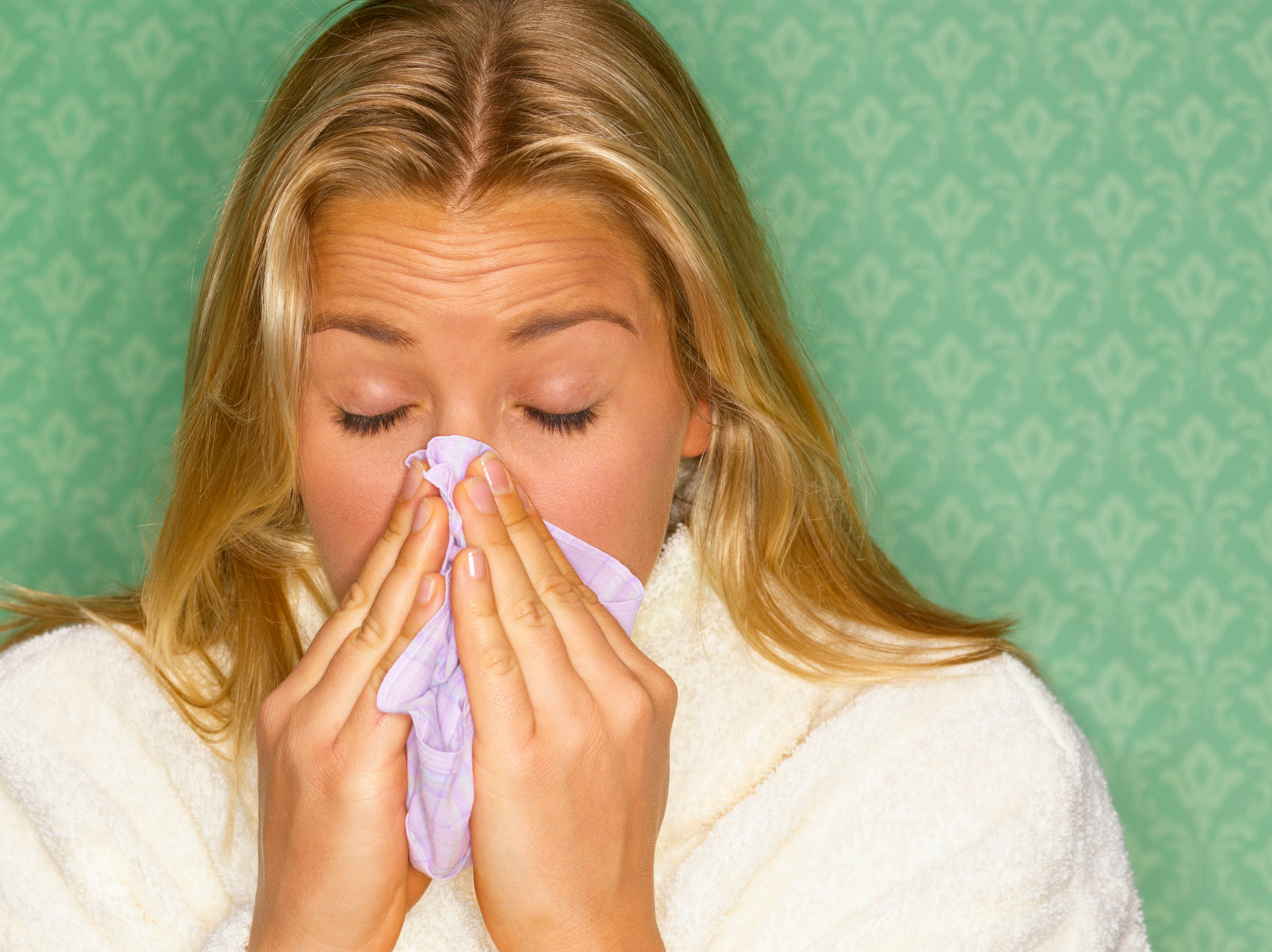 Симптомы насморка не заставят себя долго ждать. Раздражение слизистой спровоцирует частое чихание.