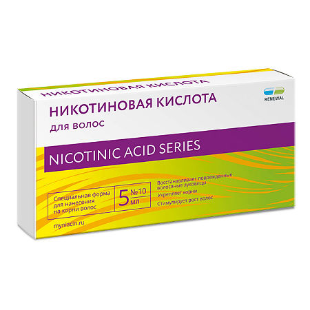 Она используется в производстве косметических средств для ухода за волосами, в домашних же условиях никотинку можно применять для улучшения роста волос и укрепления волосяных луковиц. Препарат продаётся в аптеках в ампульной форме и в виде таблеток для приёма внутрь. Их можно пить только по рекомендации специалиста и ни в коем случае не совмещать с алкоголем. Для предотвращения выпадения шевелюры используются ампулы с витамином РР, представляющие собой стеклянные флакончики с жидкостью без цвета и запаха.